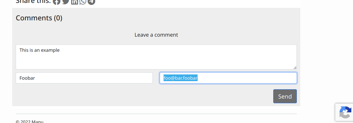 Como he comentado, una vez que se ha pasado el captcha se enviaria el comentario a la revisión del administrtador del sitio por correo y se revisaria en el backend.