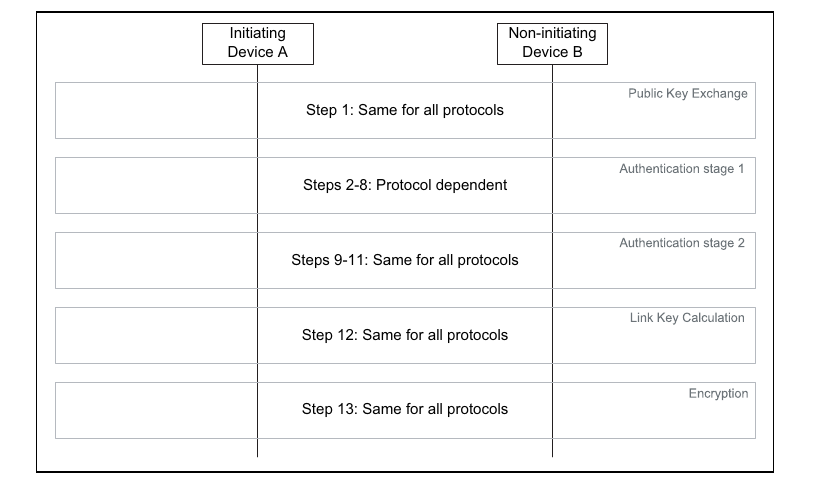 - Passkey Entry: Not protection against eavesdroping, a 6 numeric digits are passed out of band between devices.